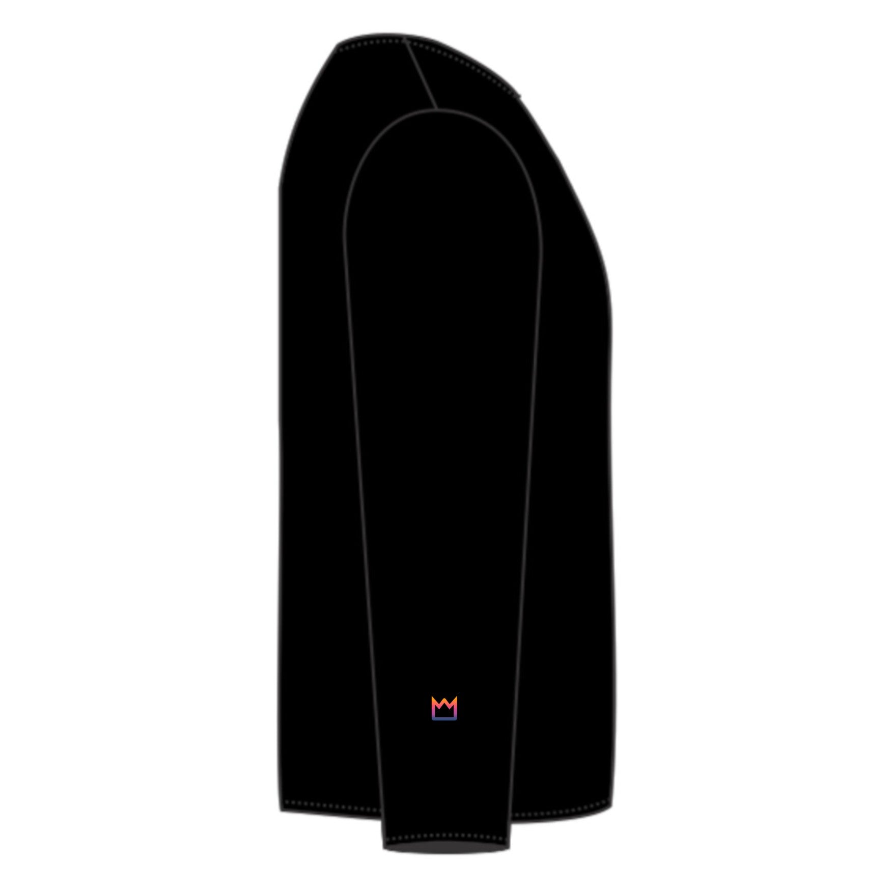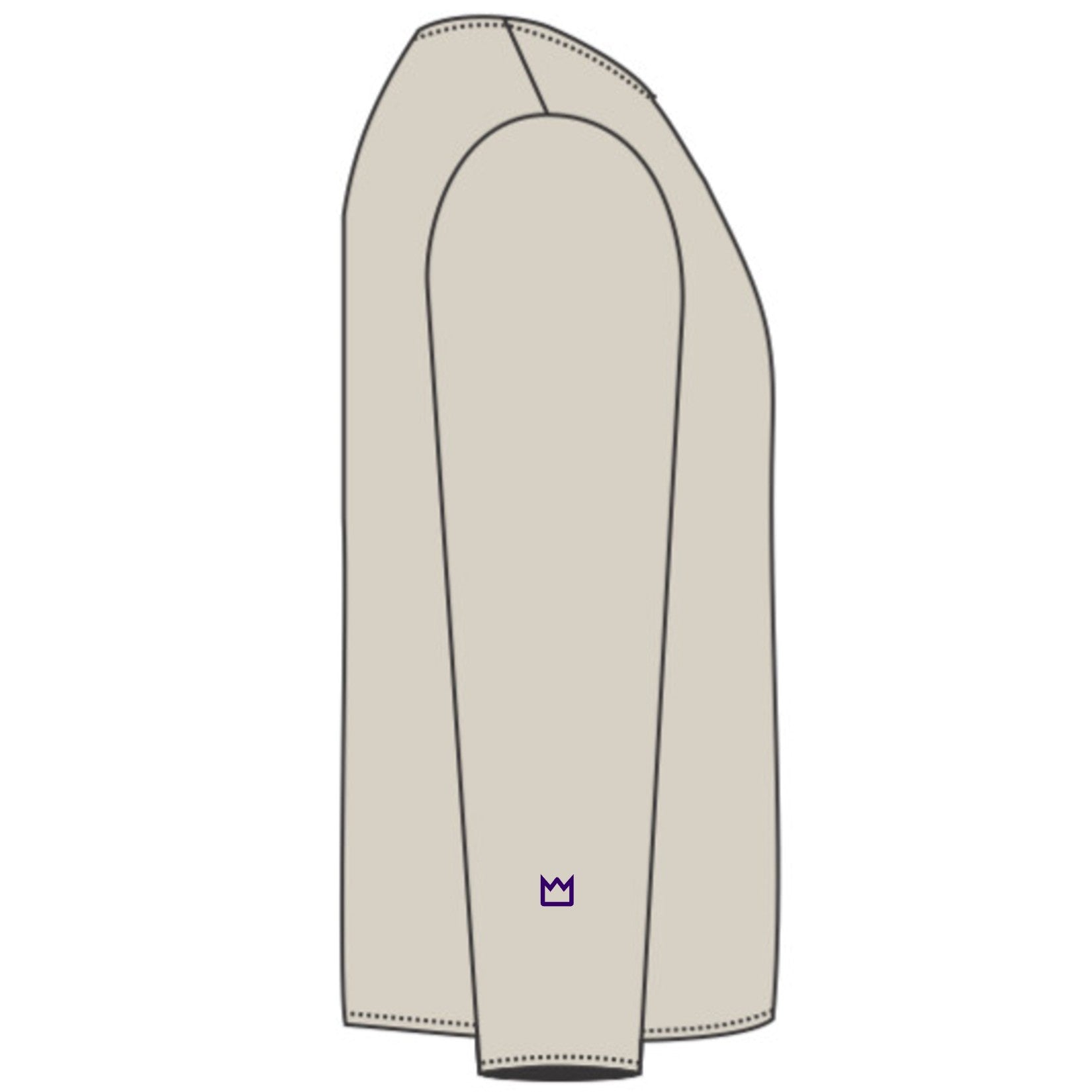 Crown logo placement on this hoody style is on the right sleeve near cuff.
